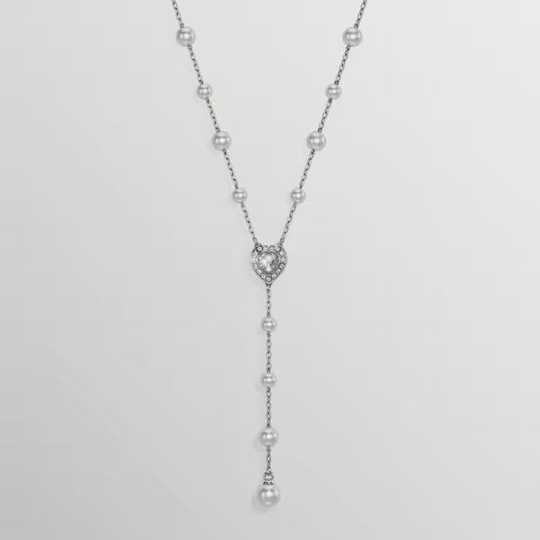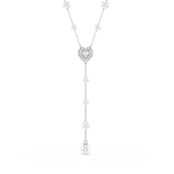 Ariana Grande x Swarovski Y Necklace Crystal Pearl Heart White Rhodium Plated