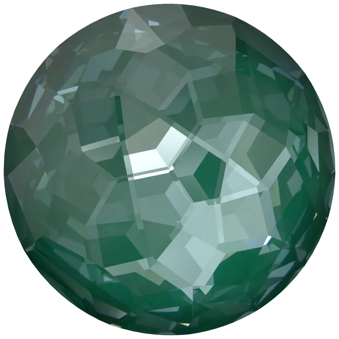 Swarovski chatons Fantasy (1383) in Crystal Pine Green Ignite UNFOILED are multi faceted pointed back crystals that are used with metal settings to create bespoke jewellery and embellishment designs. Swarovski Fantasy chaton is a crystal component that features a round shape with a unique, irregular faceting pattern that creates a mesmerizing play of light and colour. The facets are arranged in a way that creates a kaleidoscopic effect, with different colours and shapes visible from different angles.