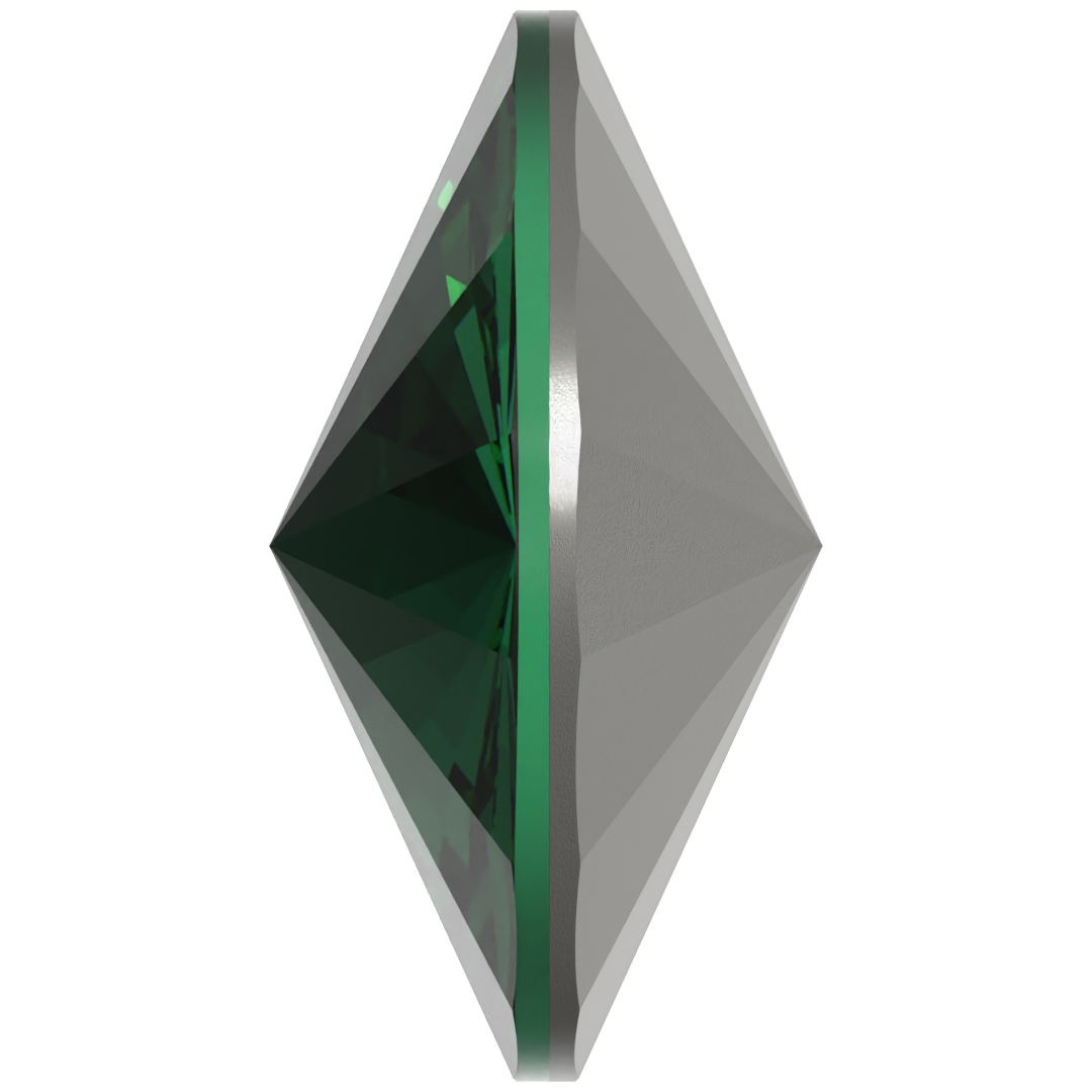 Swarovski chatons Rivoli (1122) in Majestic Green are multi faceted pointed back crystals that are used with metal settings to create bespoke jewellery and embellishment designs. Swarovski Rivoli shaped crystals are cut glass stones that have specifically cut facets which lead to a point. They are foiled on the underside of the crystal to reflect the light and enhance the colour of the stone.