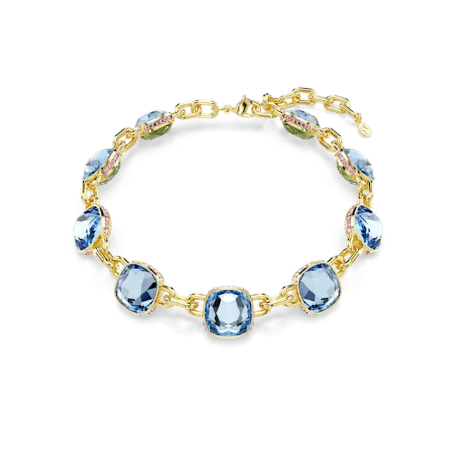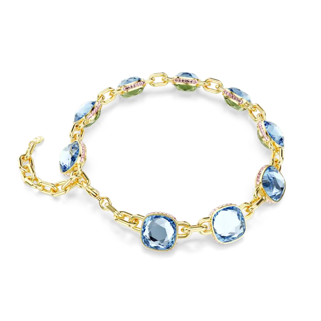 Swarovski Chroma Tennis Necklace Cushion Cut Gold-Tone Plated