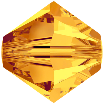 Swarovski crystal beads Xilion Bicone (5328) in Sunflower have a smooth thread hole and are multi-faceted to reflect the light, making them perfect to create bespoke designs. Swarovski Bicone beads are cylindrical in shape and taper at both ends to form a bi-conical shape. The tapered multi-faceted shape of bicone beads adds texture, dimension and sparkle to jewellery and bespoke designs.