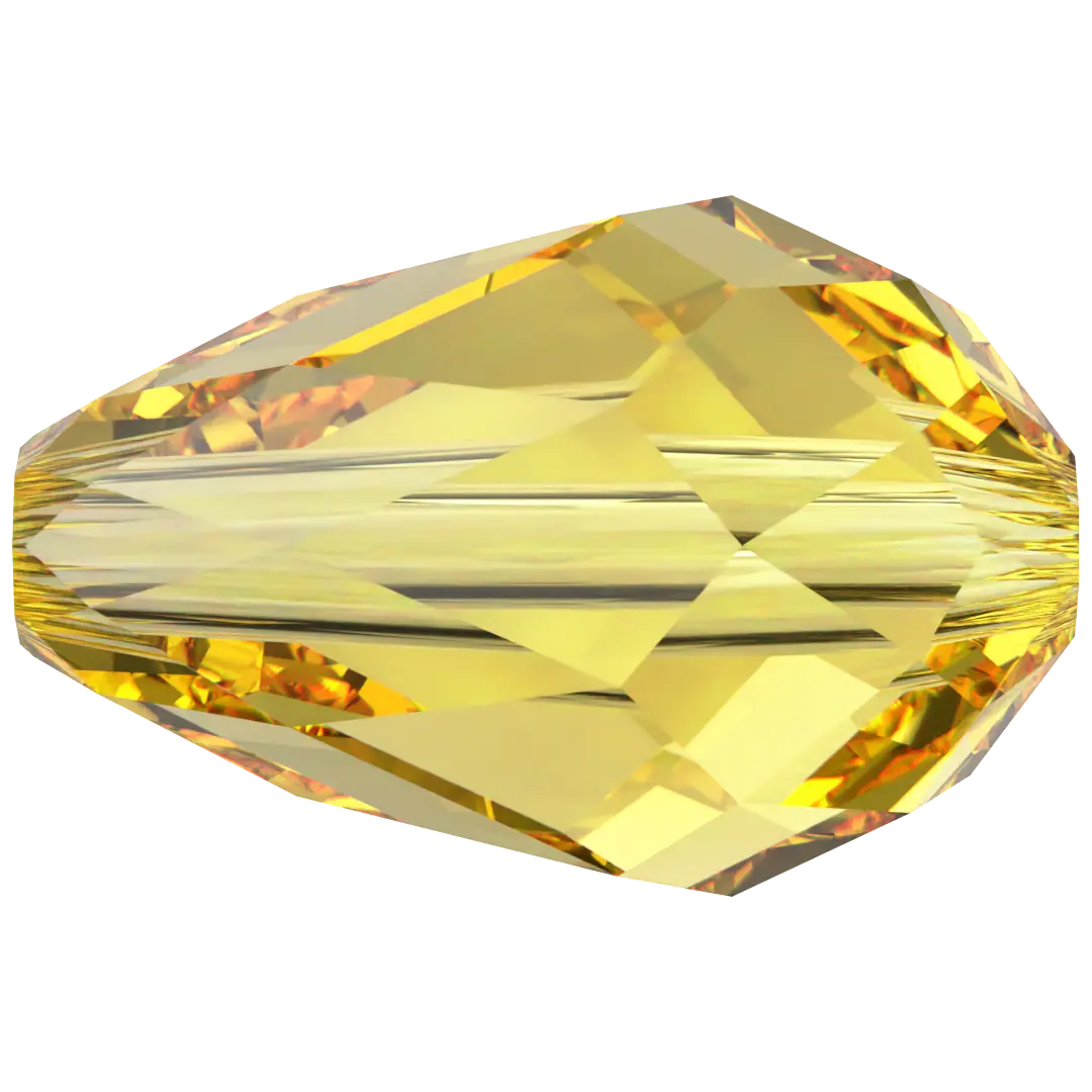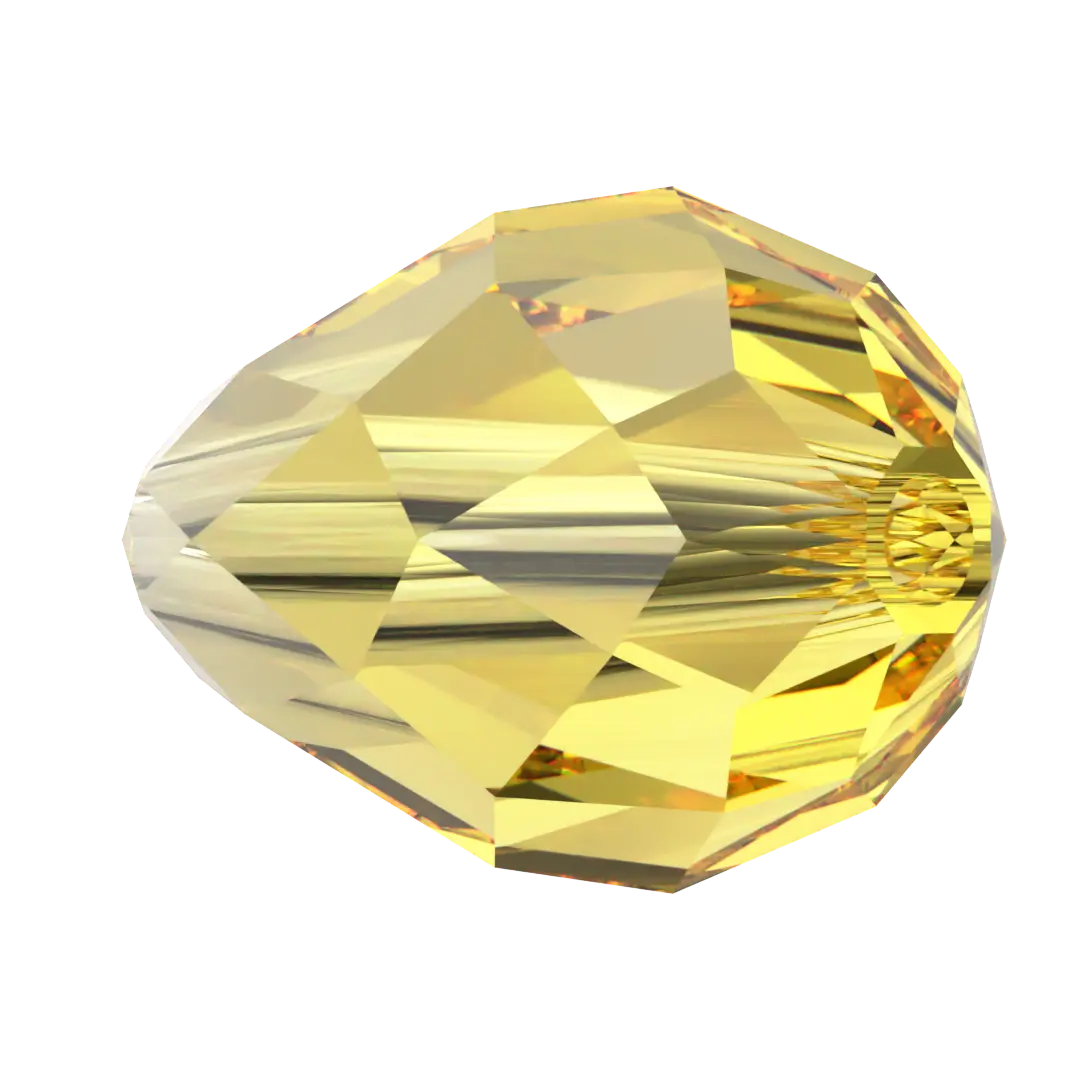 Swarovski crystal beads Drop (5500) in Light Topaz have a smooth thread hole and are multi-faceted to reflect the light, making them perfect to create bespoke designs. Swarovski Drop shaped crystals are traditional drop in shape with a rounded bottom and a pointed top. They have a symmetrical shape with a faceted surface that creates a brilliant shine and sparkle.