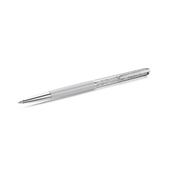 This slender ballpoint pen offers a timeless accessory for endless creativity. The slimline design is filled with around 400 clear crystals, which are visible through the long transparent window. Along with a silver-grey barrel, the pen includes chrome plated finishing for an ultra-luxurious look. Gift to yourself or someone you know who has a poetic way with words. Refills of black and blue inks are available to purchase in Swarovski stores.
