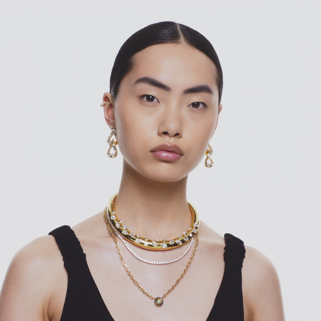Swarovski Dextera Hoop Earrings Small White Gold-Tone Plated
