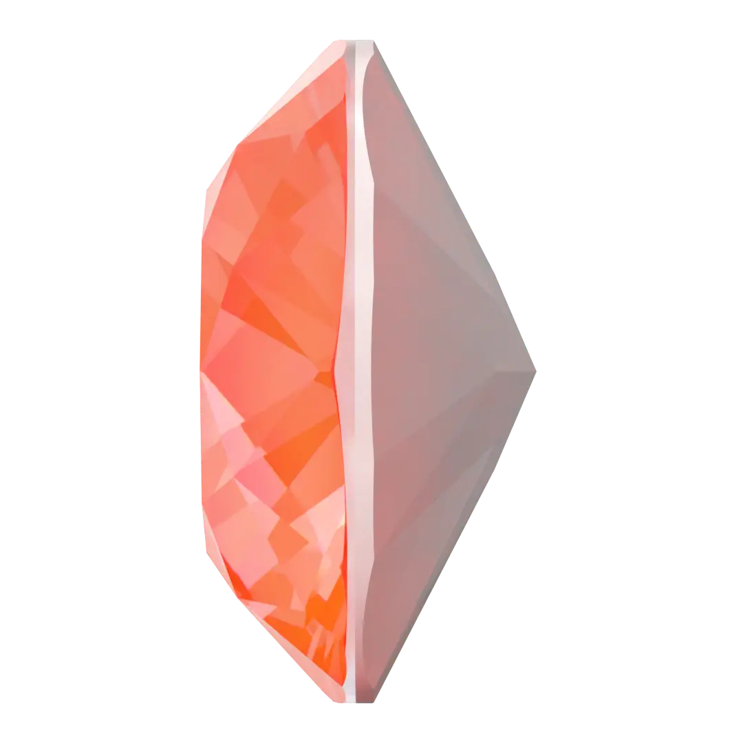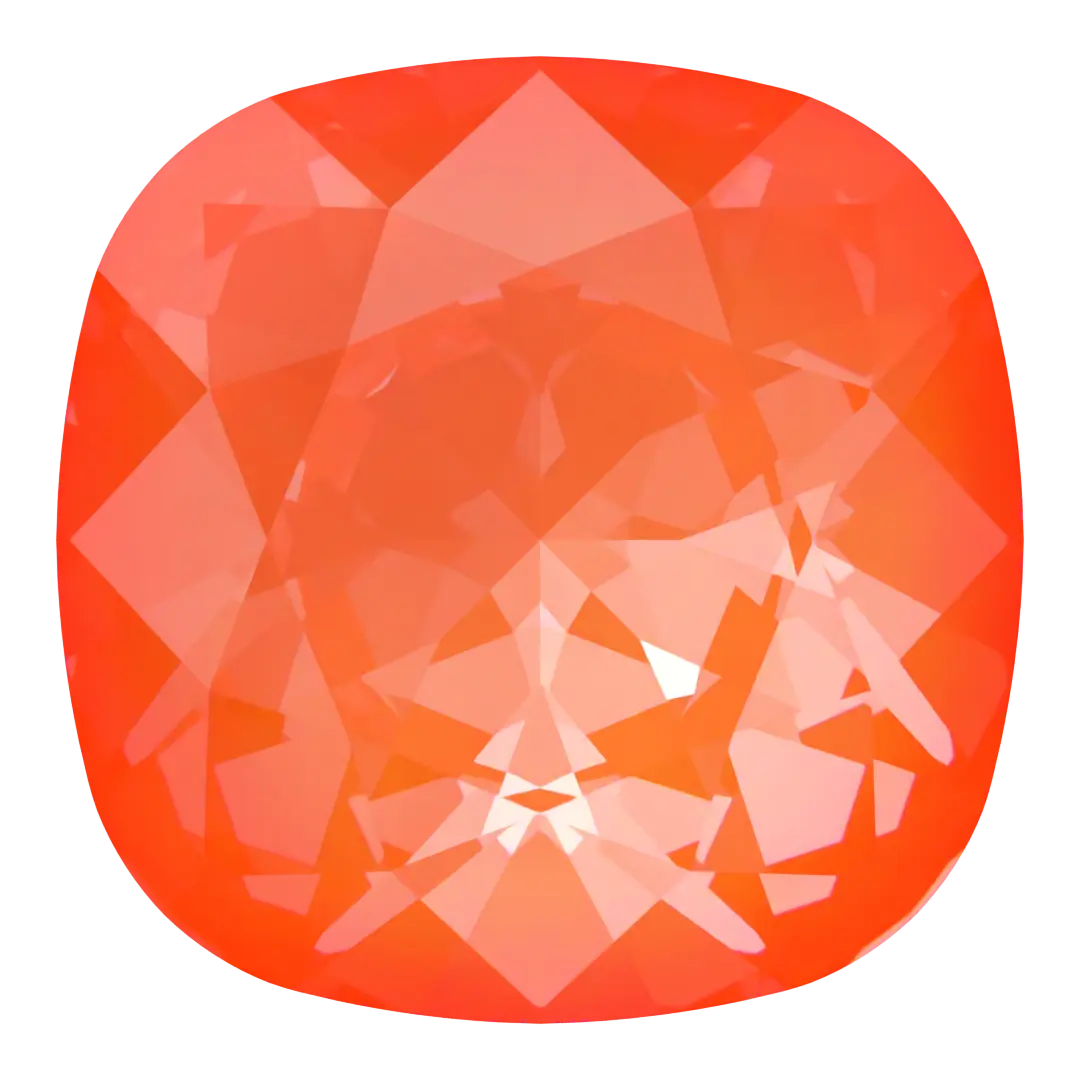 Swarovski fancy stones Cushion Square (4470) in Crystal Electric Orange Ignite UNFOILED are multi faceted pointed back crystals that have no thread hole and can be applied to fabric or to create jewellery designs using metal settings or in pre-made cavities. Swarovski Cushion Square stone is a crystal stone that features a square shape with rounded edges, giving it a cushion-like appearance. The stone is cut with multiple facets, which enhances its brilliance and creates a beautiful sparkle.