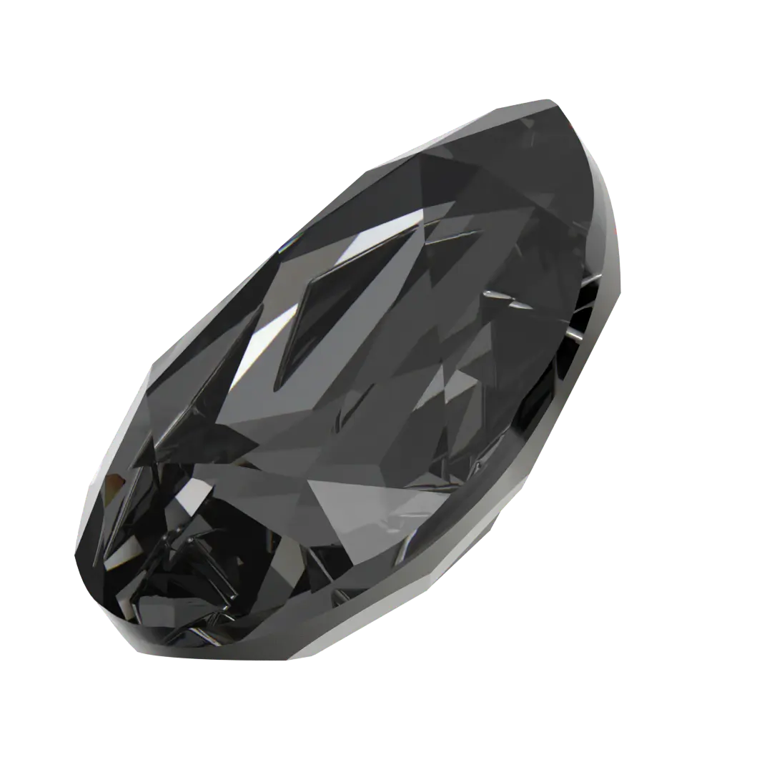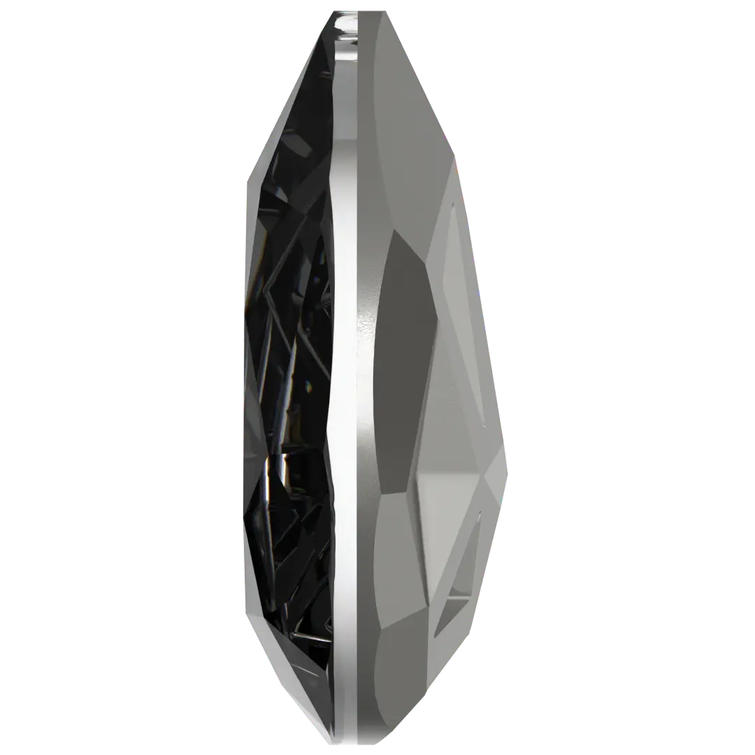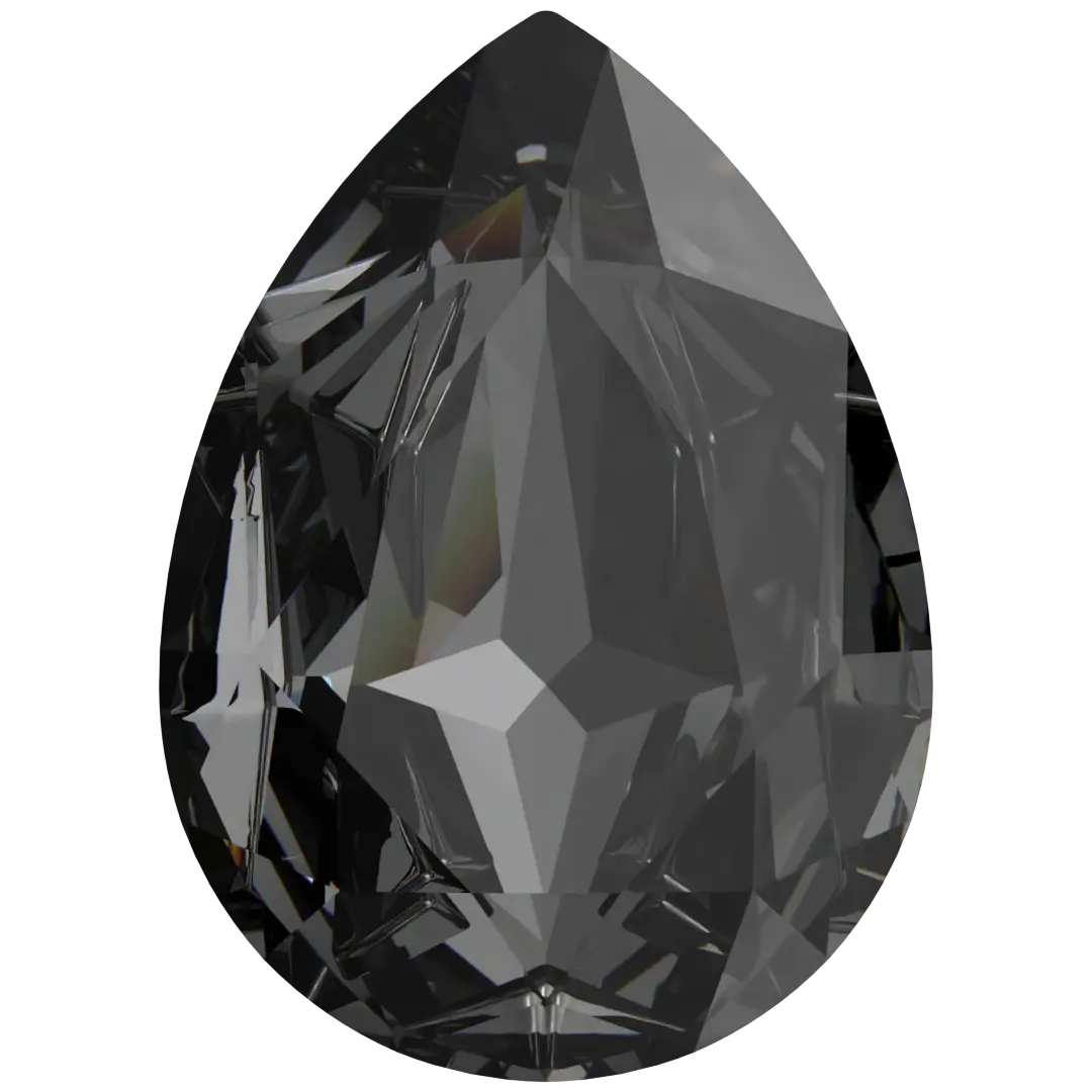 Swarovski fancy stones Mirage Pear (4390) in Crystal Silver Night are multi faceted pointed back crystals that have no thread hole and can be applied to fabric or to create jewellery designs using metal settings or in pre-made cavities. Swarovski Mirage Pear shaped crystals are traditional pear in shape with a rounded bottom and a pointed top. They have a symmetrical shape with a faceted surface that creates a brilliant shine and sparkle.