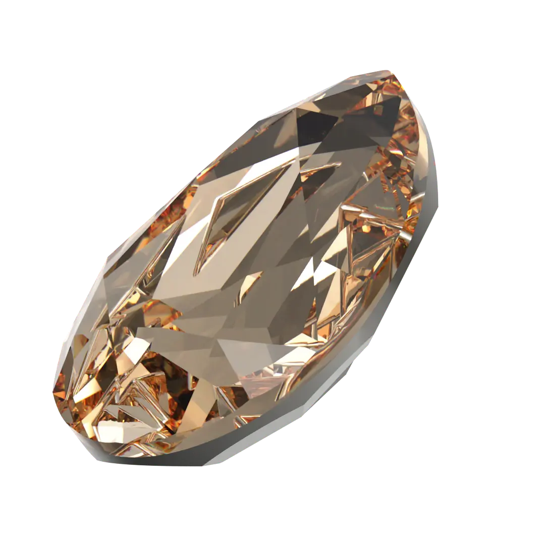Swarovski fancy stones Mirage Pear (4390) in Light Colorado Topaz are multi faceted pointed back crystals that have no thread hole and can be applied to fabric or to create jewellery designs using metal settings or in pre-made cavities. Swarovski Mirage Pear shaped crystals are traditional pear in shape with a rounded bottom and a pointed top. They have a symmetrical shape with a faceted surface that creates a brilliant shine and sparkle.