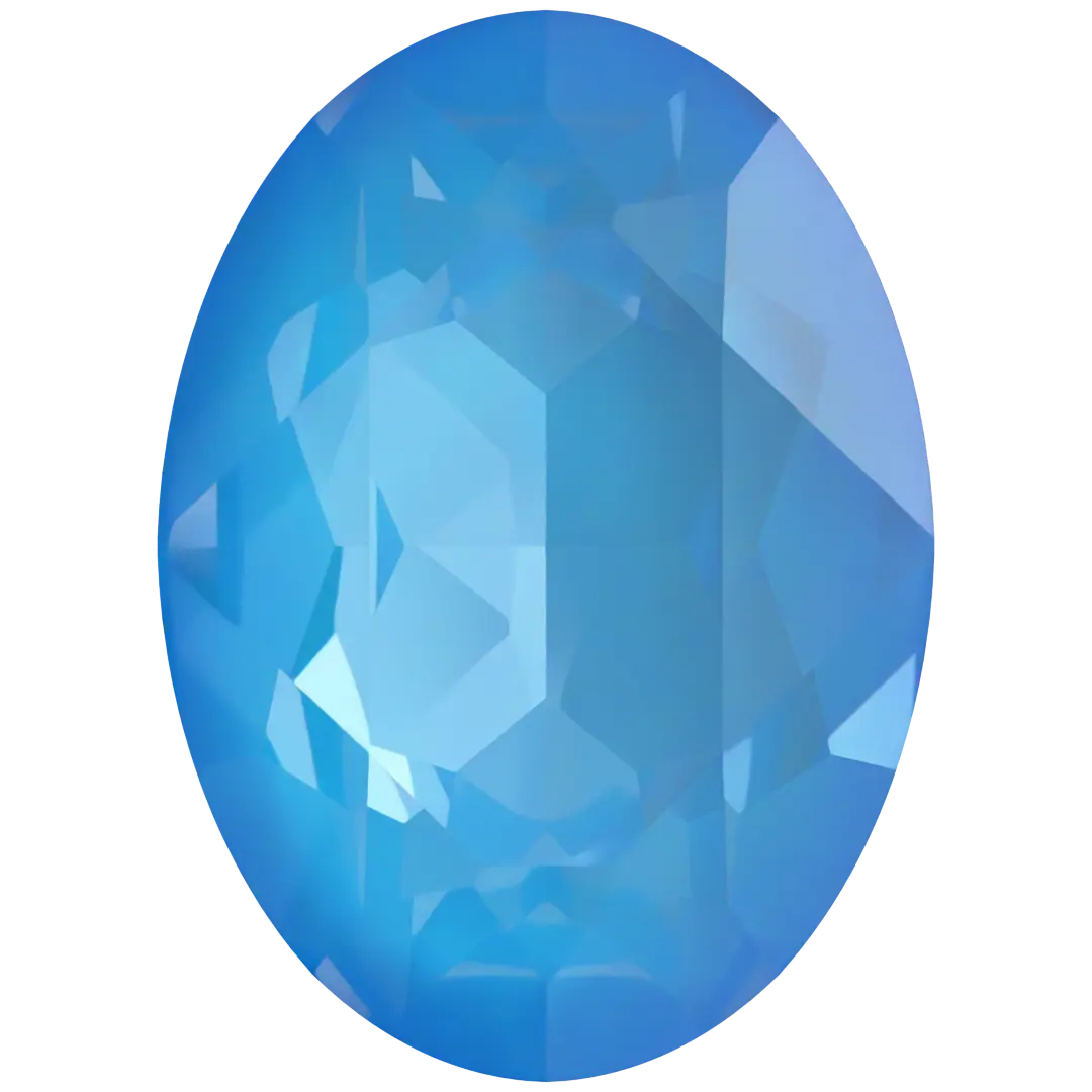 Swarovski fancy stones Oval (4120) in Crystal Electric Blue Ignite UNFOILED are multi faceted pointed back crystals that have no thread hole and can be applied to fabric or to create jewellery designs using metal settings or in pre-made cavities. Swarovski Oval shaped crystals are an elongated elliptical shape with rounded ends. They have a multi-faceted surface that creates a multi-faceted effect, which gives them a sparkling and radiant appearance.