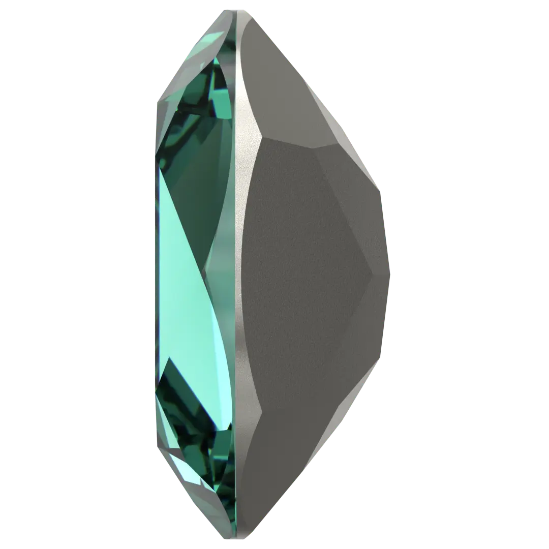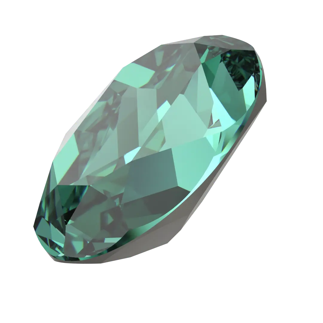 Swarovski fancy stones Oval (4120) in Recreated Caribbean Green are multi faceted pointed back crystals that have no thread hole and can be applied to fabric or to create jewellery designs using metal settings or in pre-made cavities. Swarovski Oval shaped crystals are an elongated elliptical shape with rounded ends. They have a multi-faceted surface that creates a multi-faceted effect, which gives them a sparkling and radiant appearance.