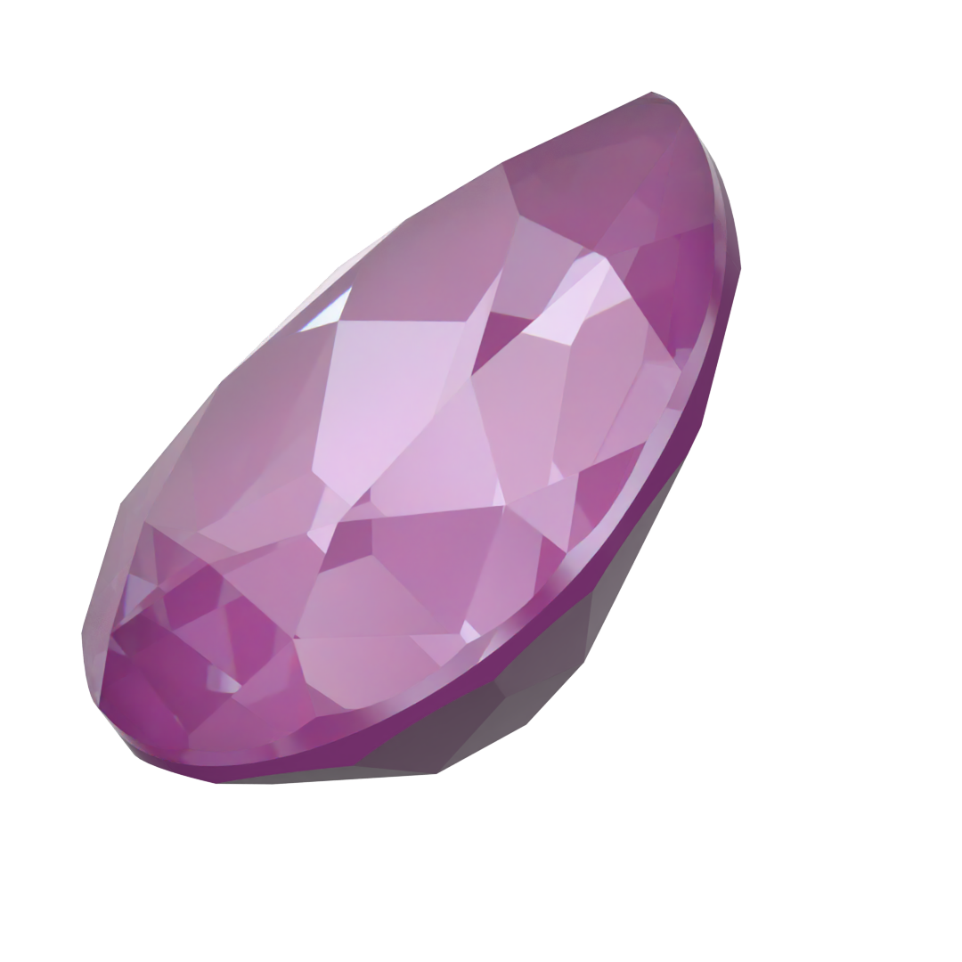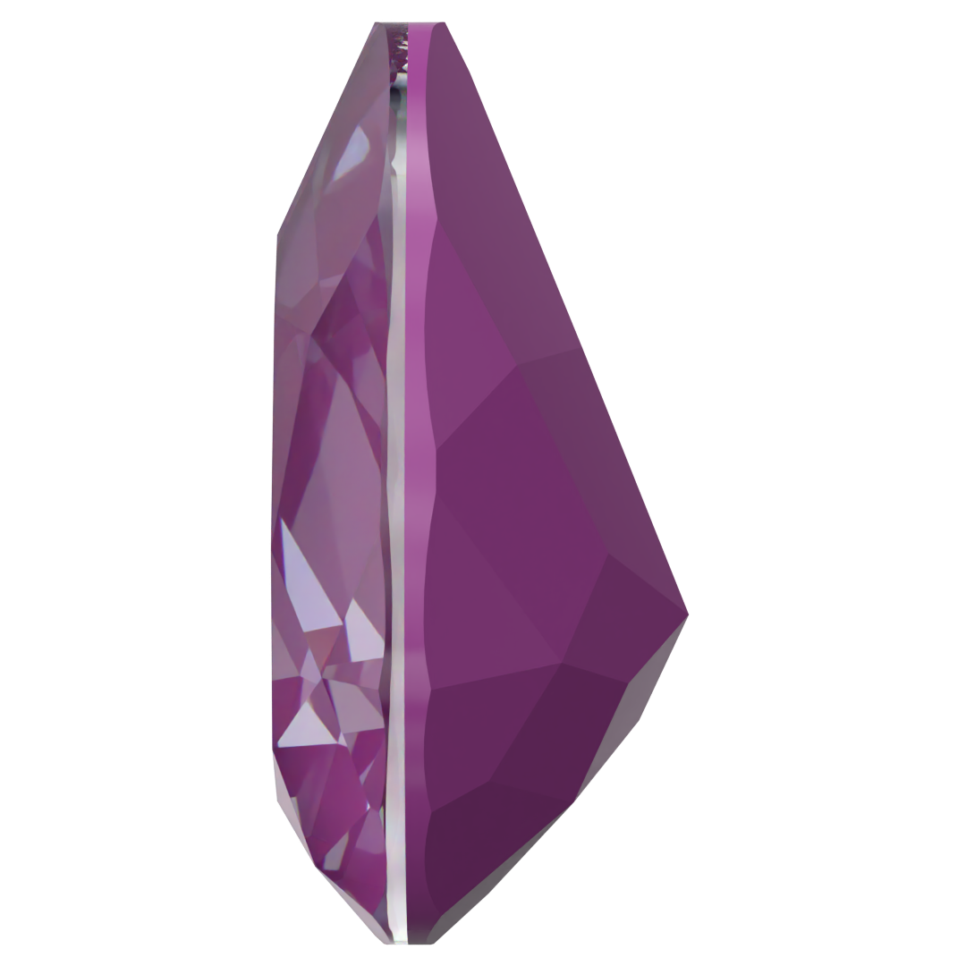 Swarovski fancy stones Pear (4320) in Crystal Orchid Ignite UNFOILED are multi faceted pointed back crystals that have no thread hole and can be applied to fabric or to create jewellery designs using metal settings or in pre-made cavities. Swarovski Pear shaped crystals are traditional pear in shape with a rounded bottom and a pointed top. They have a symmetrical shape with a faceted surface that creates a brilliant shine and sparkle.