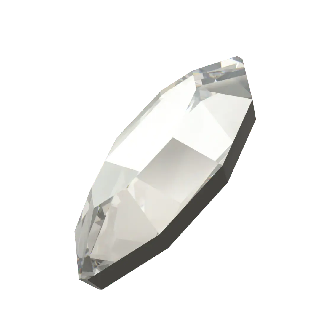 Swarovski rhinestones non hotfix Navette (2200) in Crystal Silver Shade are flat back crystals that can easily be applied to most surfaces with glue. Swarovski Navette shaped crystals have an elongated, oval shape with pointed ends that resemble a small canoe or a leaf. They have a flat top surface and bevelled edges that create a multi-faceted effect, giving them a sparkling and radiant appearance.