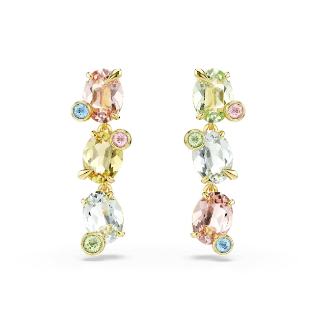 Swarovski Gema Drop Earrings Asymmetrical Mixed Cuts Multicolored Gold-Tone Plated