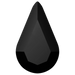Swarovski hotfix crystals Drop (2300) in Jet are flat back crystals where the reverse side of the crystal has been pre-coated with a heat-sensitive glue. Swarovski Drop shaped crystals have a distinctive teardrop shape. They are smaller at the top and wider at the bottom, resembling a droplet of water or a teardrop.