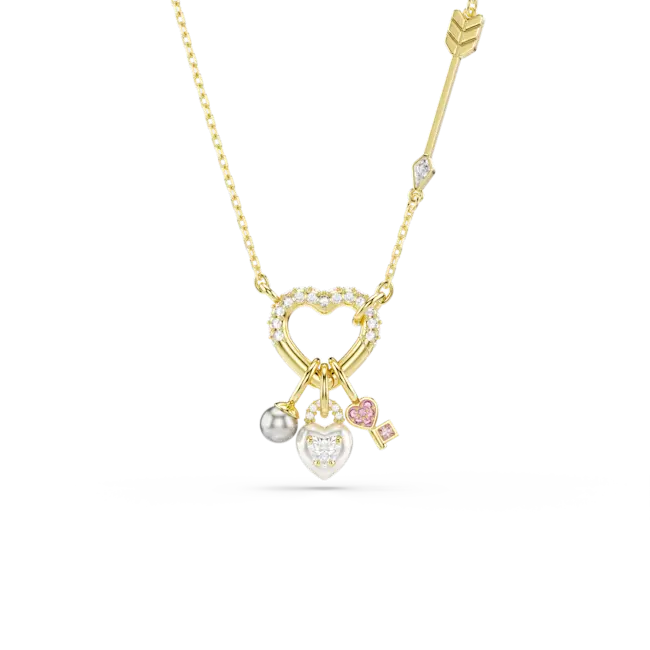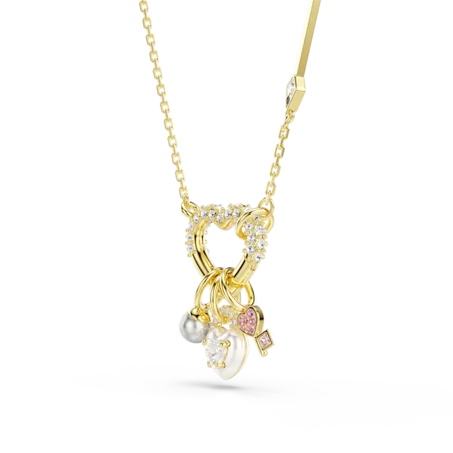 Swarovski Idyllia Pendant Mixed Cuts Heart Key Pink Gold-Tone Plated