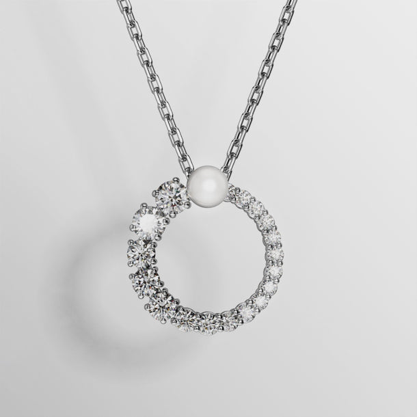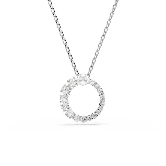 Swarovski Matrix Pendant Crystal Pearl Round Cut White Rhodium Plated