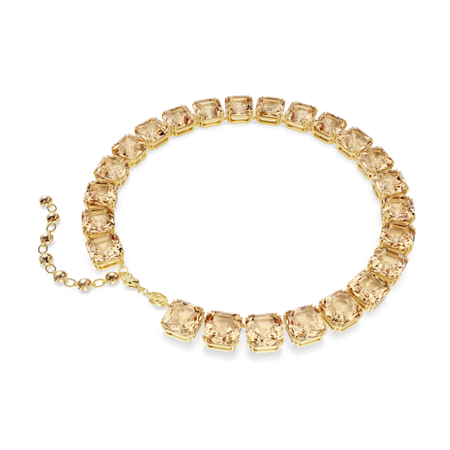 Swarovski Millenia Tennis Necklace Octagon Cut Caramel Gold-Tone Plated