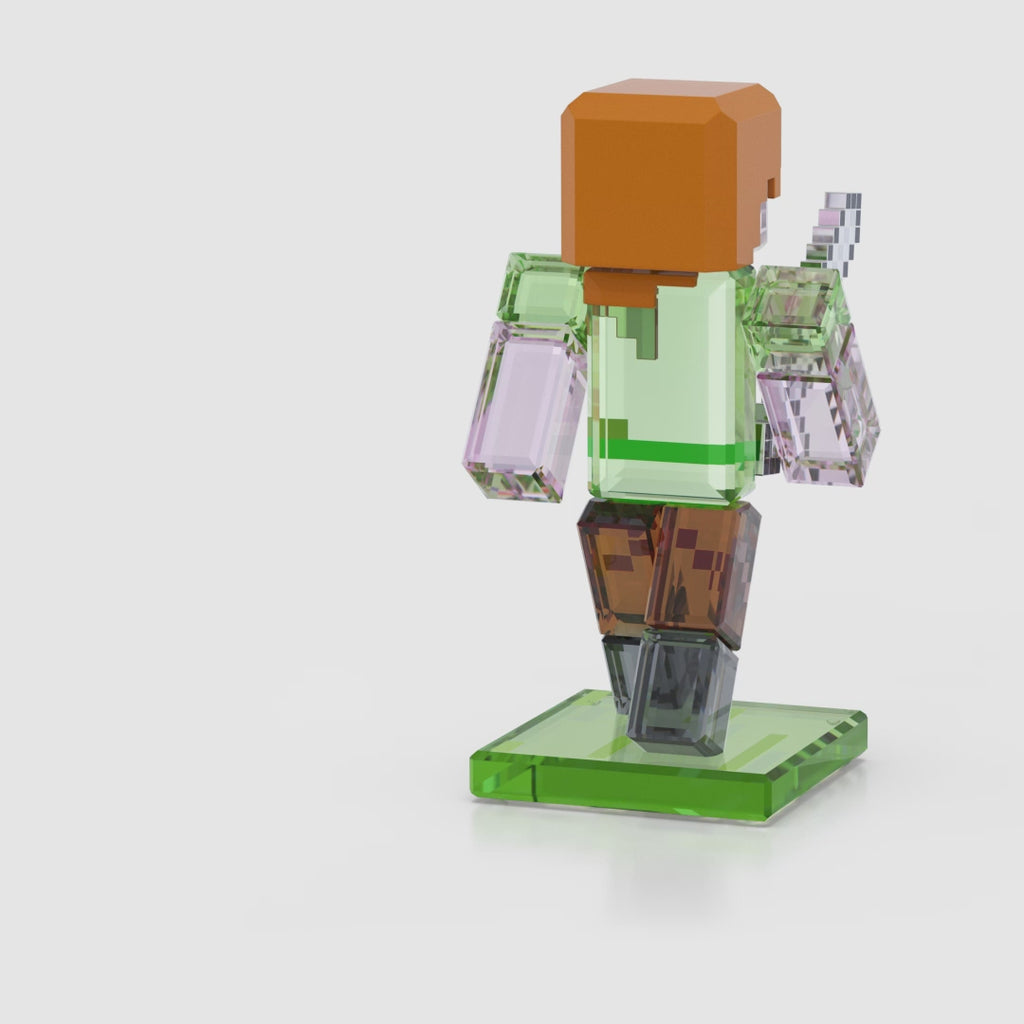 Entering the fascinating world of Minecraft merchandise, Swarovski has teamed up with Mojang Studios to unveil this adventurous Minecraft Alex figurine. The design uses full-cut crystals to replicate Minecraft’s famous block style and features 426 facets for a precise finish. A mix of vivid colours are used to give Alex her signature clothing style, as she bravely steps forward with her trusty sword. Metallic details are also used for the orange hair and sword to create extra definition. This Minecraft Alex figure is ideal for any dedicated fan who loves Minecraft gifts. It can also be paired with other Minecraft collectibles from the same family. Decoration object. Not a toy. Not suitable for children under 15.