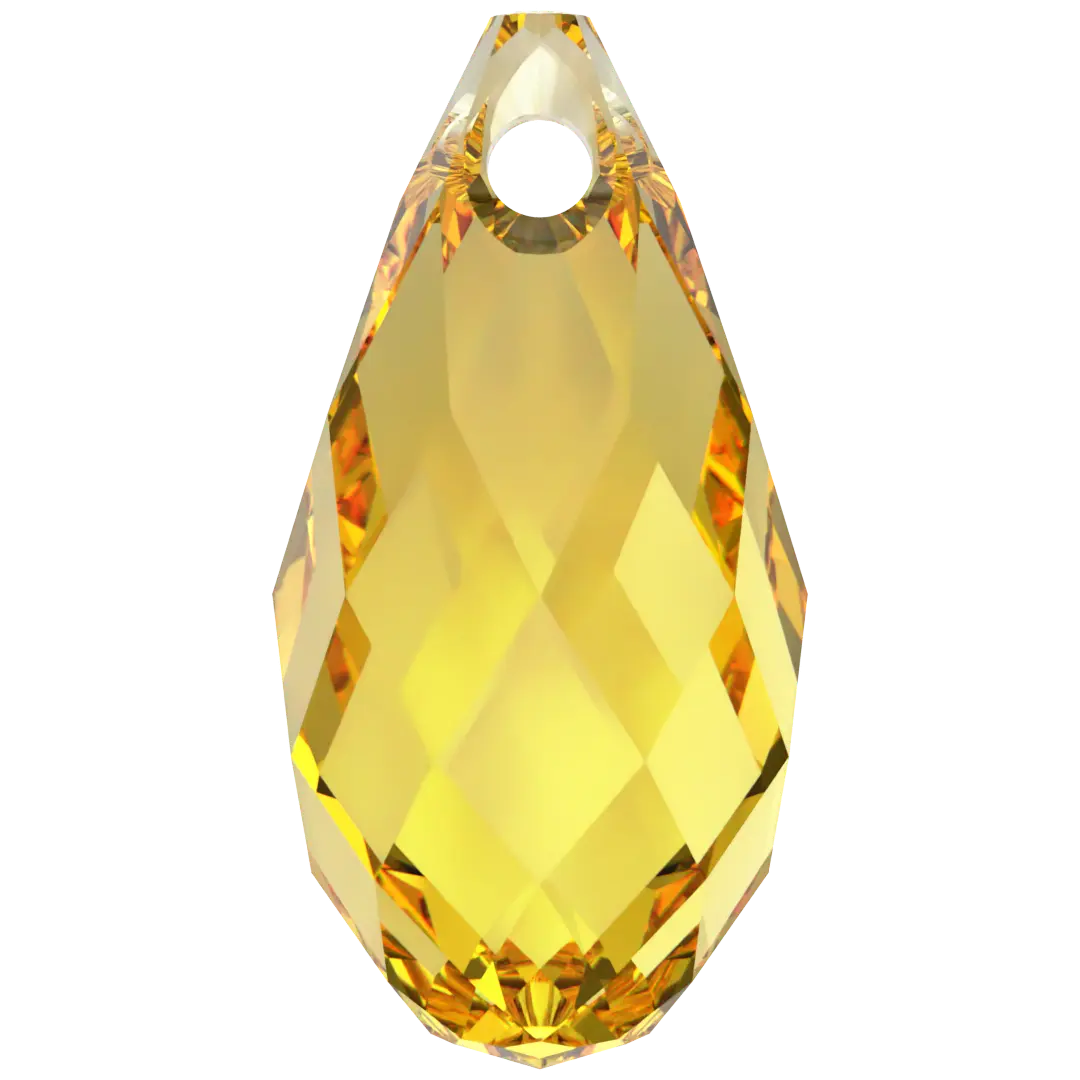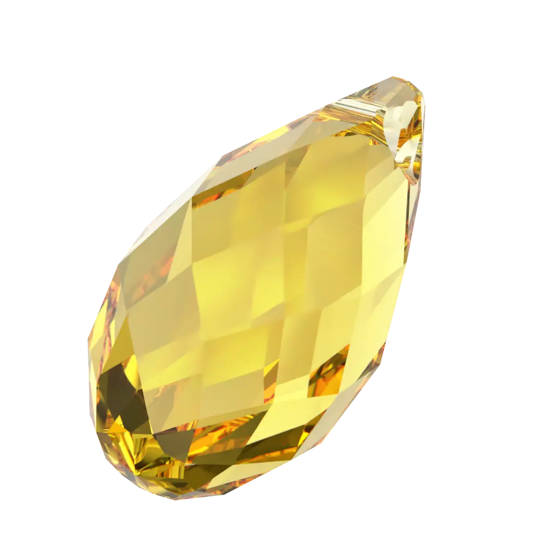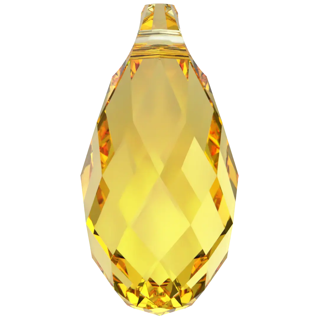 Swarovski pendants Briolette (6010) in Light Topaz are multi faceted crystals with a thread hole at the top enabling them to be attached to a chain or finding to create a piece of jewellery. Swarovski Briolette pendants are designed with a unique teardrop shape that is expertly cut using the briolette technique. The briolette cut involves shaping the crystal into a series of symmetrical, triangular or diamond-shaped facets that reflect light brilliantly from every angle. This cut gives the crystal a stunning and sparkling appearance that is sure to catch the eye.