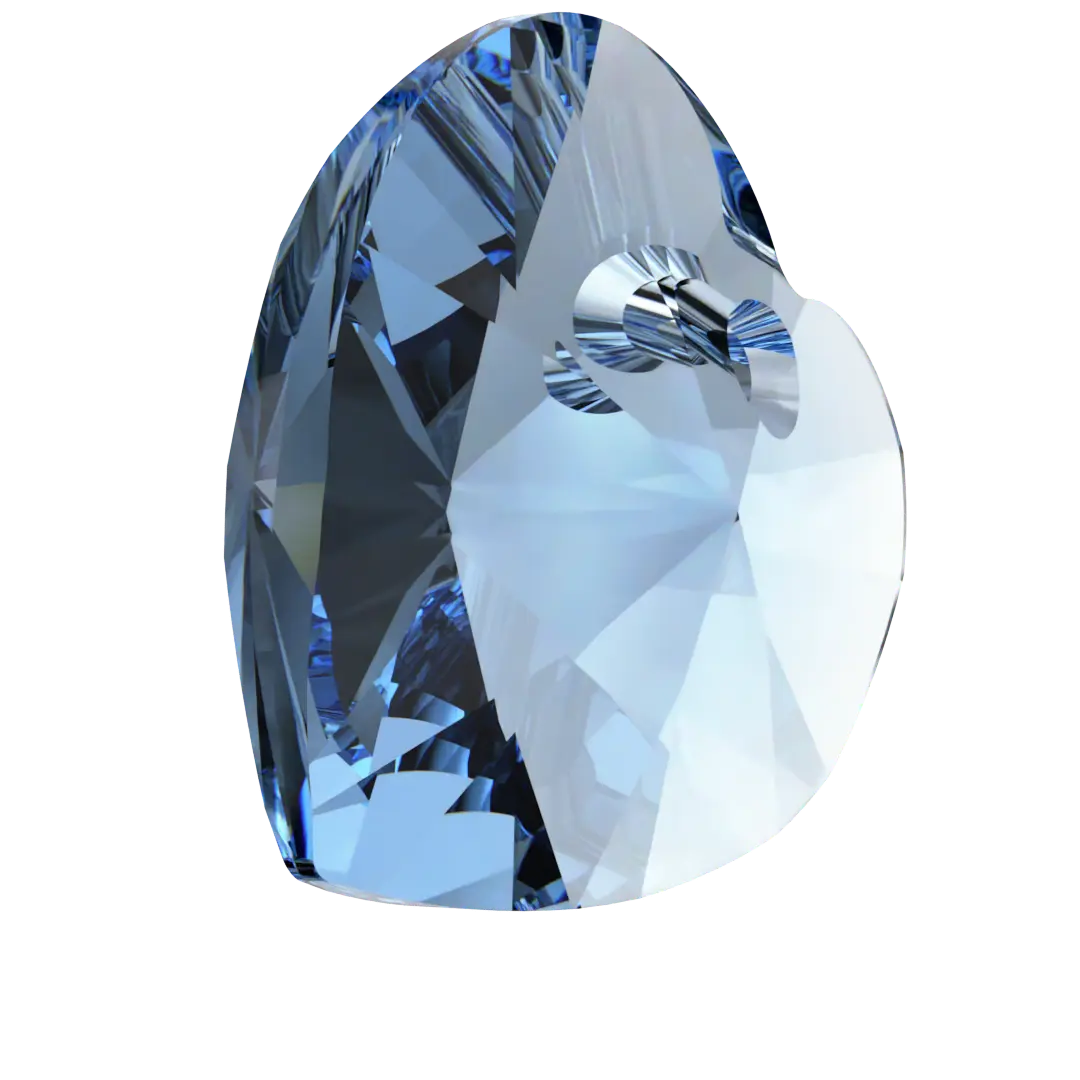 Swarovski pendants Xilion Heart (6228) in Recreated Ice Blue are multi faceted crystals with a thread hole at the top enabling them to be attached to a chain or finding to create a piece of jewellery. Swarovski Xilion Heart shaped crystals are not only classic and timeless, but their symmetrical faceted crystal cut on the face of the heart also creates a fantastic shine that radiates from every angle, capturing the attention of anyone who beholds them.