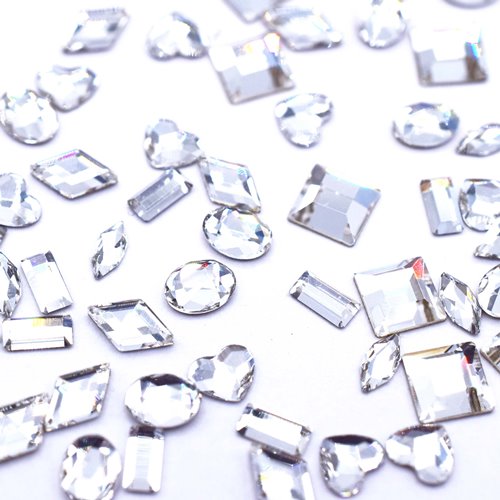 Swarovski Flat Back Crystals Shapes mix contains a variety of shaped flat back crystals in Crystal colour. Popular with nail technicians and embellishment artists, this mix is a cost effective way to purchase a selection of different crystals.