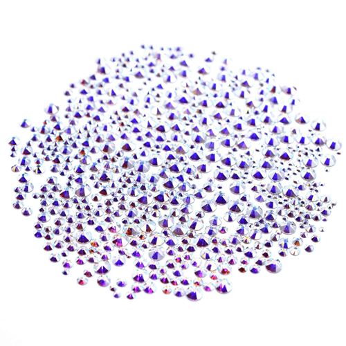 Swarovski Flat Back Crystals Crystal AB Size mix contains round flat back crystals in a variety of sizes. Popular with nail technicians and embellishment artists, this mix is a cost effective way to purchase a selection of different crystals.