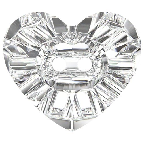 Swarovski sew on crystals Heart Button (3023) in Crystal are loose flat backed crystals that come with thread holes, enabling the crystals to be sewn onto fabric. Swarovski Heart Button crystals are characterized by their heart shape and the presence of two evenly spaced holes in the centre of the crystal. Each facet of the crystal is expertly cut to enhance its brilliance, while adding depth and character.