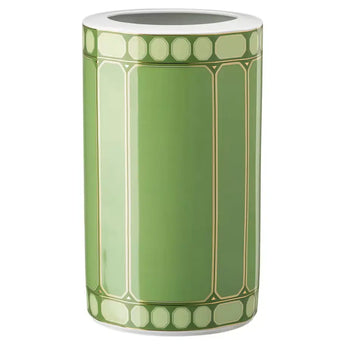 Express yourself at home with this artful vase. Designed in collaboration with porcelain brand Rosenthal, it features Swarovski's signature octagon in a geometric motif in gold tone on a vibrant shade of green. Style it alone with a bouquet or as the centrepiece of your tablescape alongside other pieces from the Signum collection. This product is dishwasher safe.