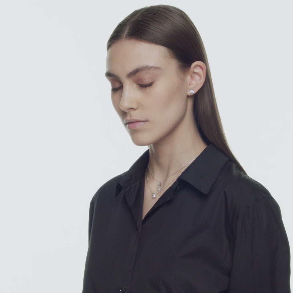 Swarovski Stilla Attract Stud Earrings Square Cut White Rhodium Plated
